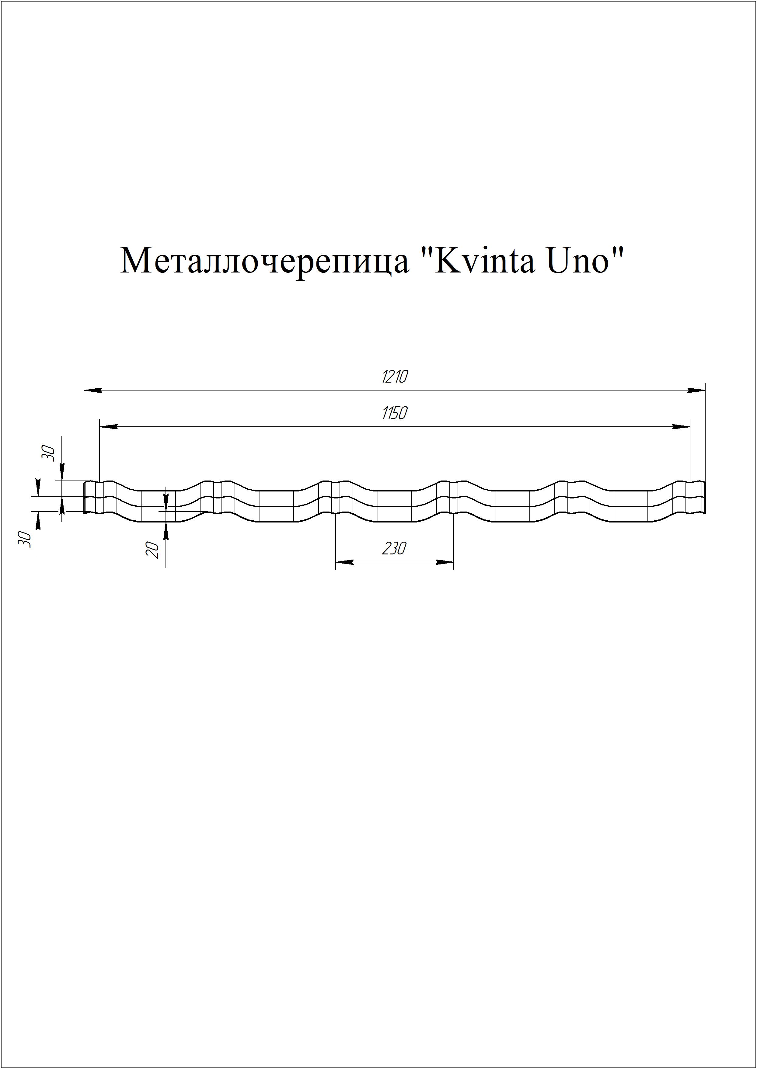 - Вид Металлочерепицы Kvinta Uno: Металлочерепица Высота волны, мм 20 Высота ступеньки, мм 30 Гарантия от 20 лет Защитный слой, г/м2 Zn от 100 до 275 Максимальная длина, м 0,72 Обратная сторона Эпоксидная серая