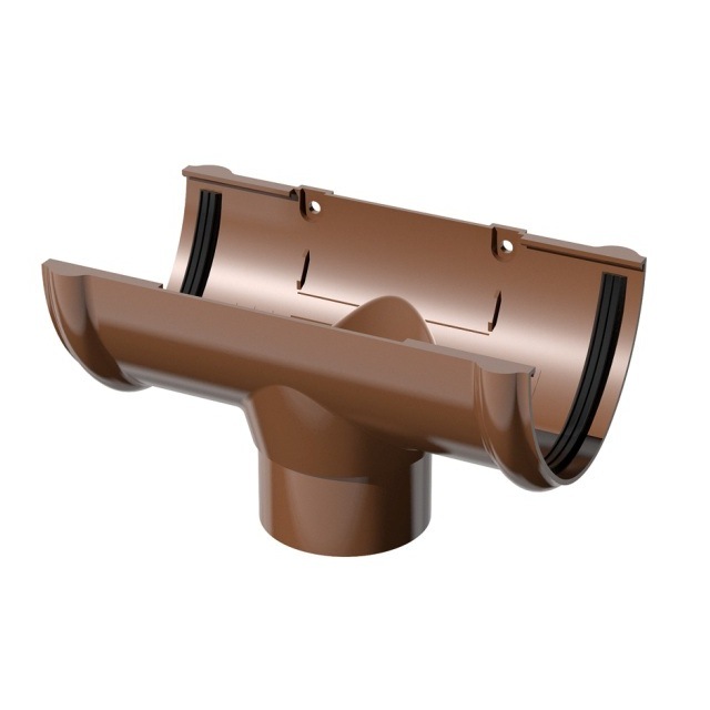 Пластиковые водосточные системы ТехноНИКОЛЬ имеют полукруглую форму с шириной водосточного желоба — 125 мм. и диаметром водосливной трубы – 80 мм. Производятся из качественного ПВХ.