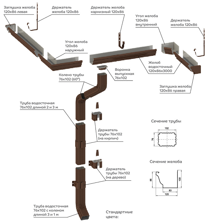 86 ― экономичное решение для частного дома. Этот базовый вариант доступен почти каждому домовладельцу. Прямоугольные желоба сечением 120