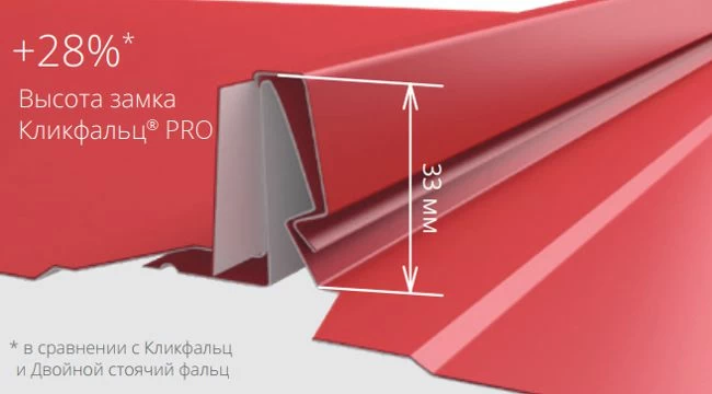 Кликфальц Pro - наш улучшенный профиль Кликфальц.Мы рекомендуем выбирать панели Кликфальц® Pro для объектов с повышенными требованиями к внешнему виду и герметичности!