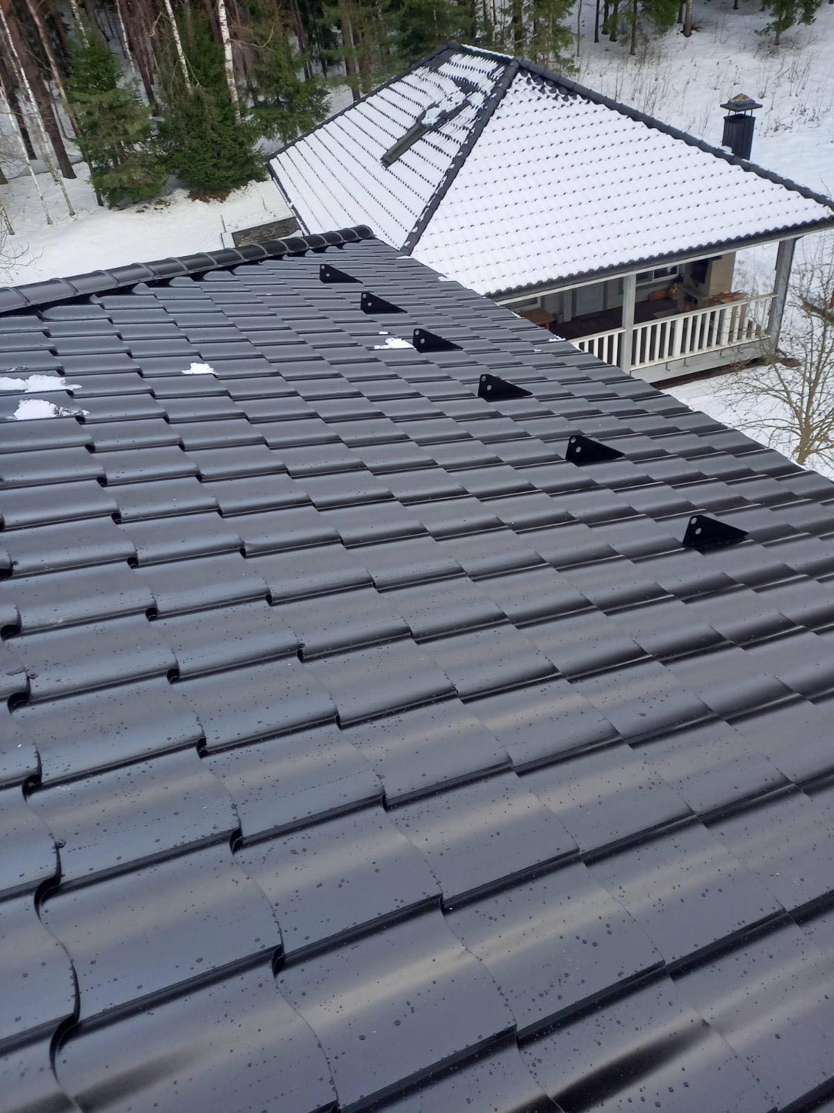 Монтерроса® ― самая высокая металлочерепица в ассортименте «МеталПрофиль». Её высота достигает 77 мм. Рельефная металлочерепица особенно красиво выглядит на крупных скатах ― она подчеркивает их размеры.